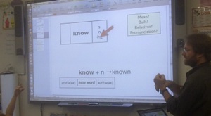 This video provides an example of taking part of the lesson described in Newsletter #63 and putting it into practice in a Grade 1 and a Grade 2/3 class. The video shows clips of me using members of the family of the base <know>, word sums and the matrix to investigate how spelling works. I also use this video to emphasize that proper use of word sums targets the teaching of graphemes as much as morphological structure.